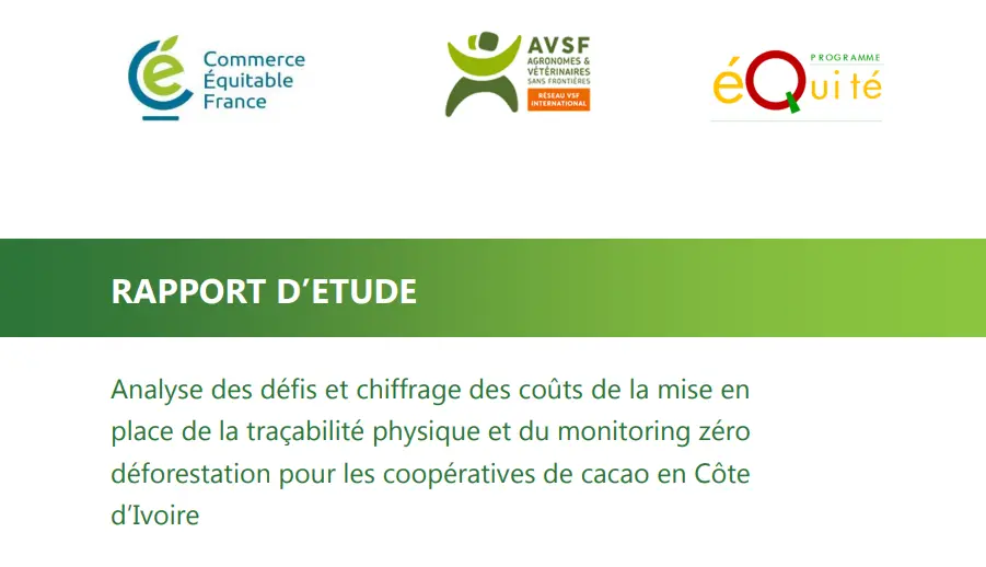 Cette note de synthèse est issue des résultats d’une étude « Cacao zéro déforestation : quels coûts de mise en conformité avec la norme ARS-1000 et le RDUE pour les coopératives de cacao en Côte d’Ivoire ? » Réalisée par : IDEF et BF Consult pour Commerce Équitable France, Agronomes et Vétérinaires Sans Frontières, le Réseau Ivoirien de Commerce Équitable et le Fair Trade Advocacy Office.